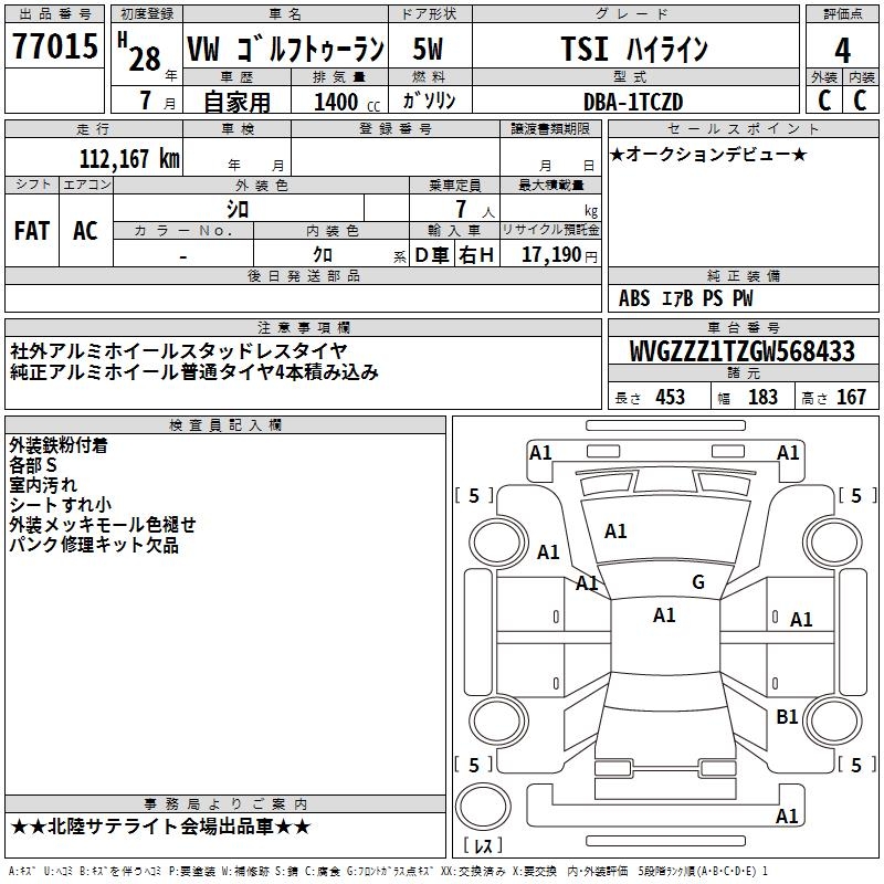 VOLKSWAGEN GOLF TOURAN - лот 77015