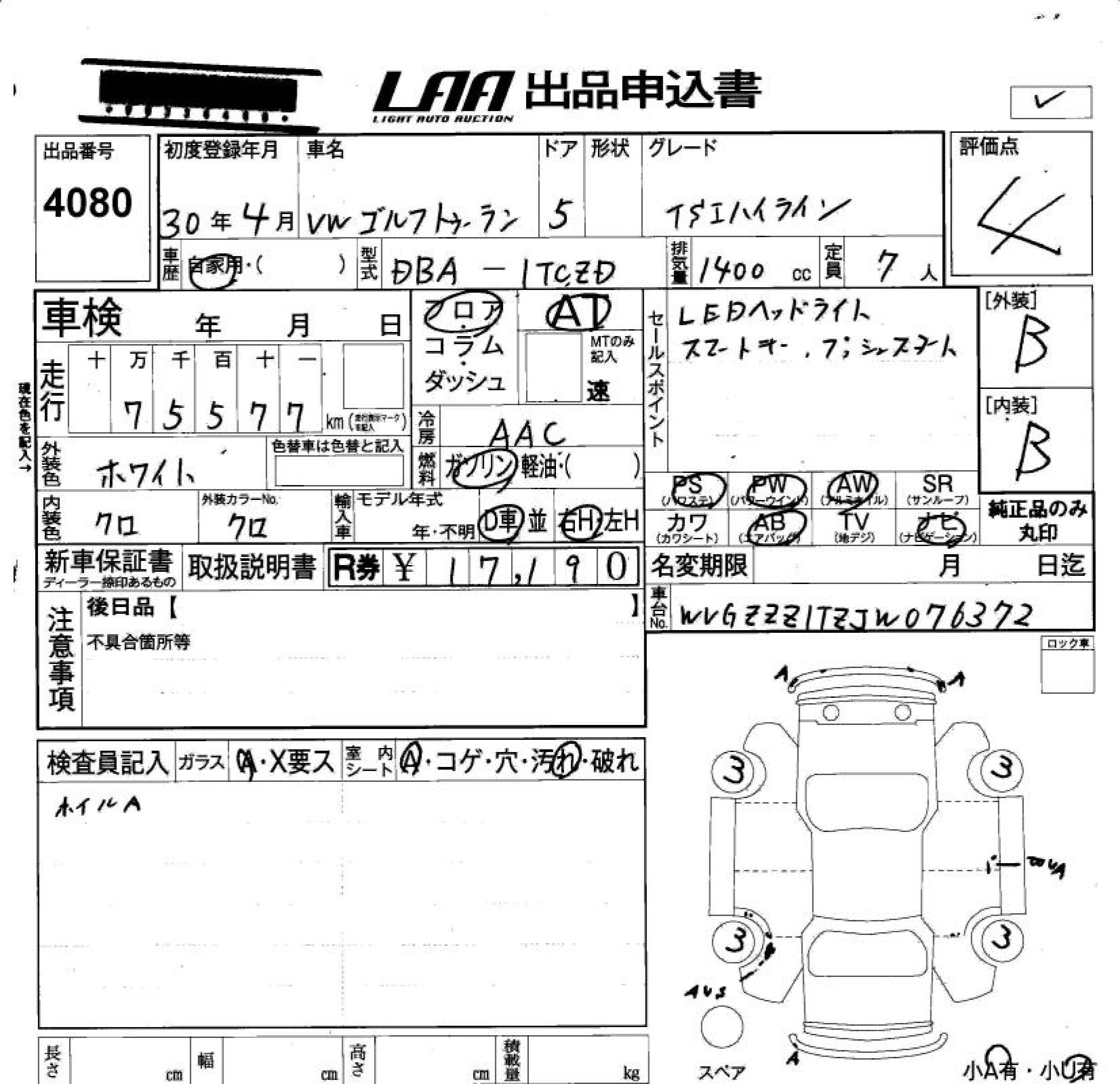 VOLKSWAGEN GOLF TOURAN - лот 4080
