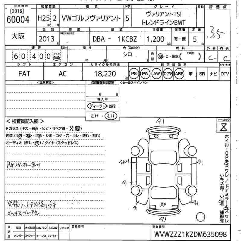 VOLKSWAGEN GOLF VARIANT - лот 60004