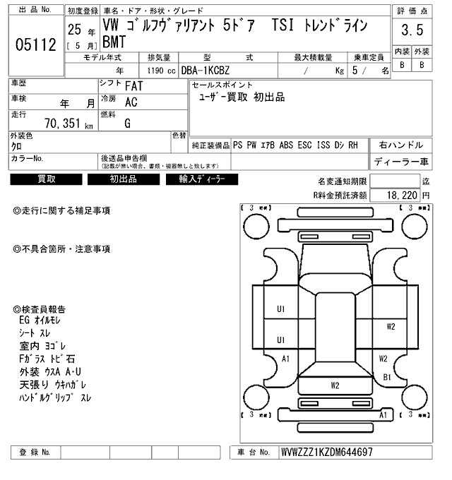 VOLKSWAGEN GOLF VARIANT - лот 5112