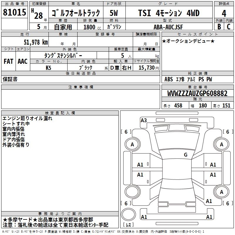 VOLKSWAGEN GOLF ALLTRACK TSI 4 MOTION 4WD - лот 81015