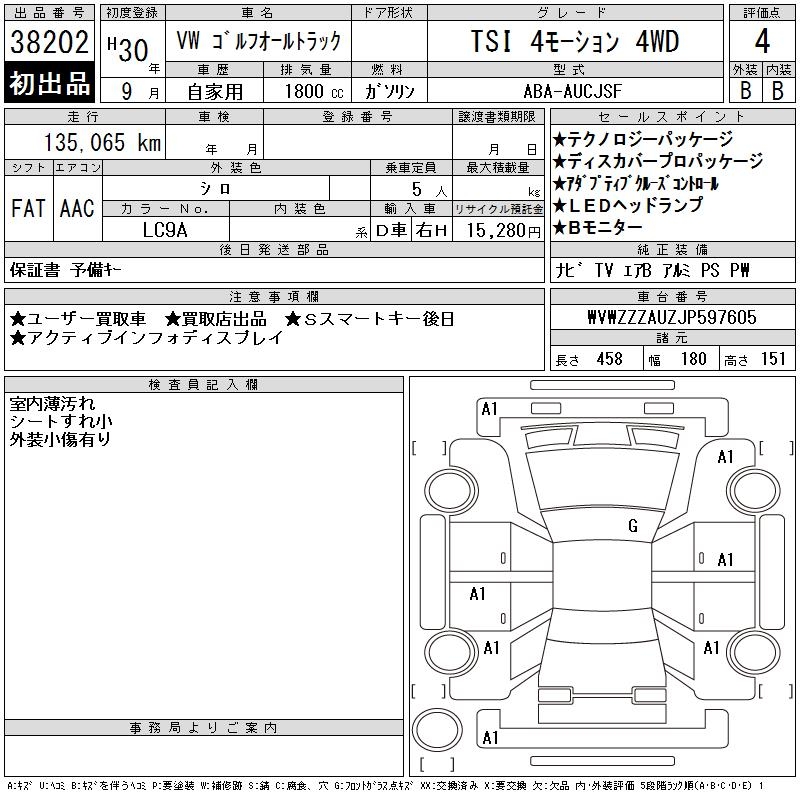VOLKSWAGEN GOLF ALLTRACK TSI 4 MOTION 4WD - лот 38202