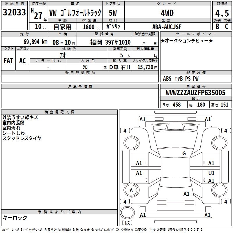 VOLKSWAGEN GOLF ALLTRACK 4WD - лот 32033