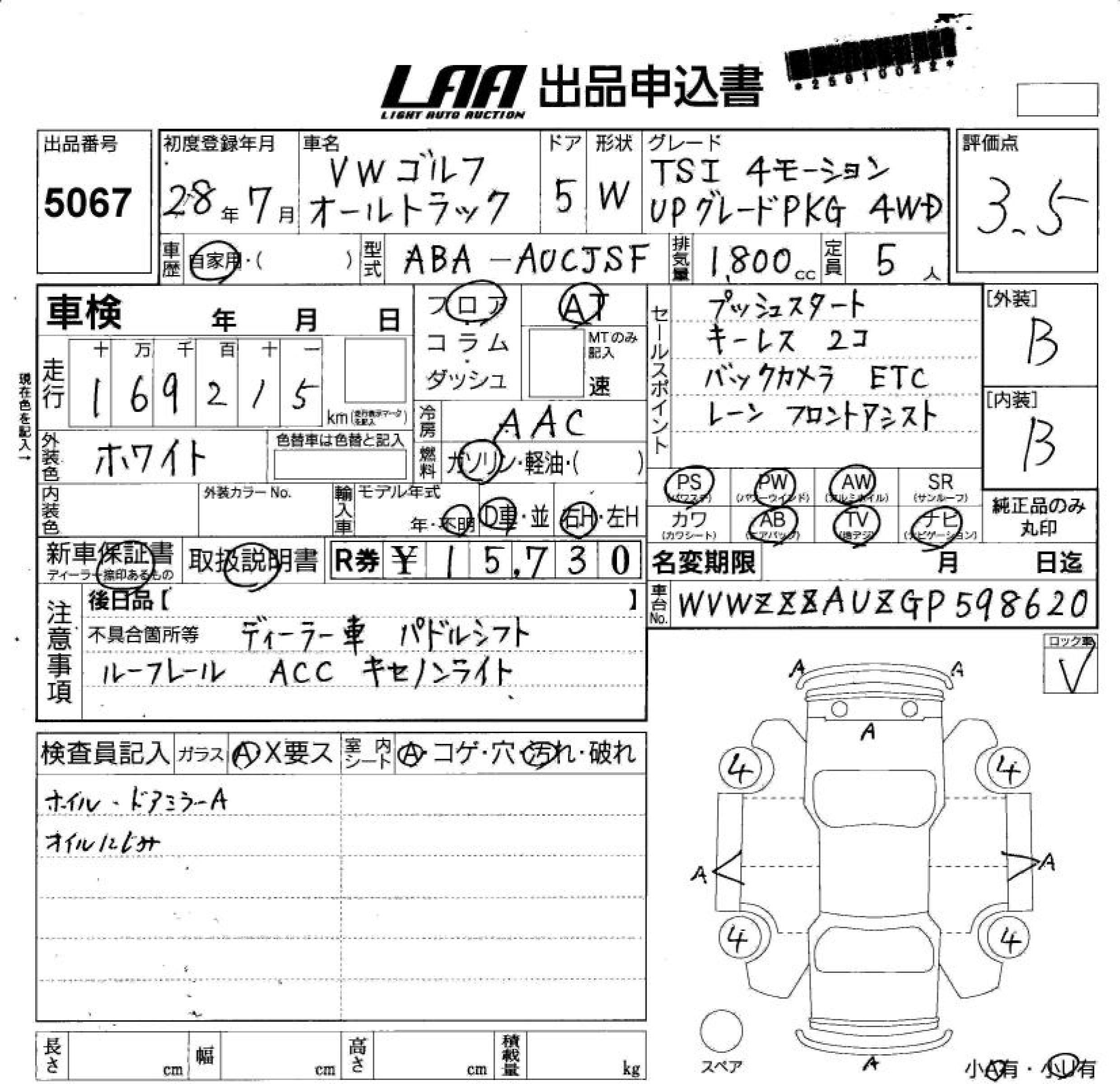 VOLKSWAGEN GOLF ALLTRACK TSI 4 MOTION UP G - лот 5067