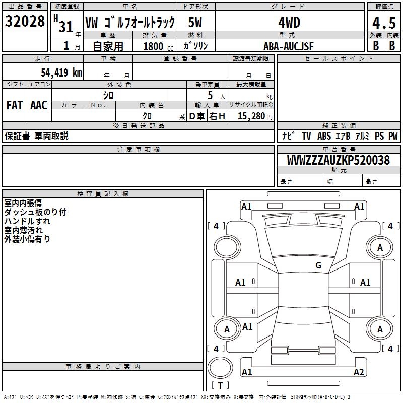 VOLKSWAGEN GOLF ALLTRACK 4WD - лот 32028