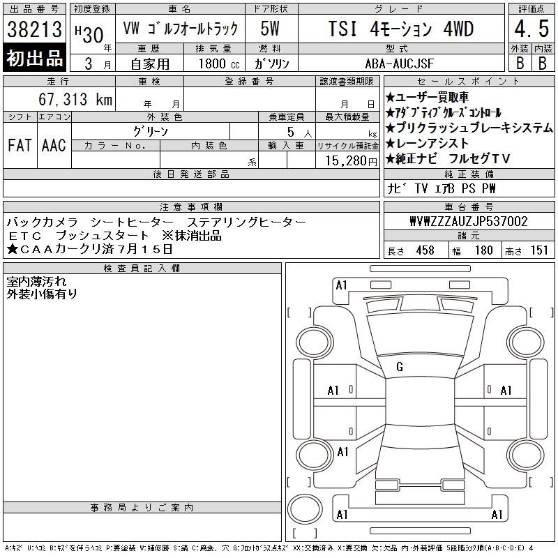 VOLKSWAGEN GOLF ALLTRACK - лот 38213
