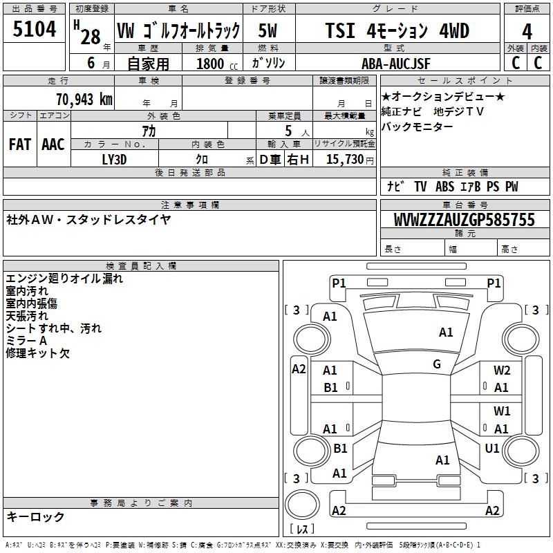 VOLKSWAGEN GOLF ALLTRACK - лот 5104
