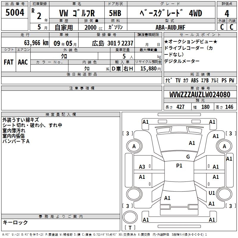 VOLKSWAGEN GOLF R BASE GRADE 4WD - лот 5004
