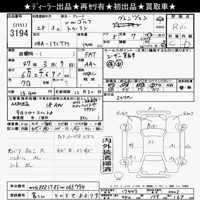 VOLKSWAGEN GOLF TOURAN - лот 3194