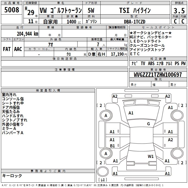 VOLKSWAGEN GOLF TOURAN - лот 5008