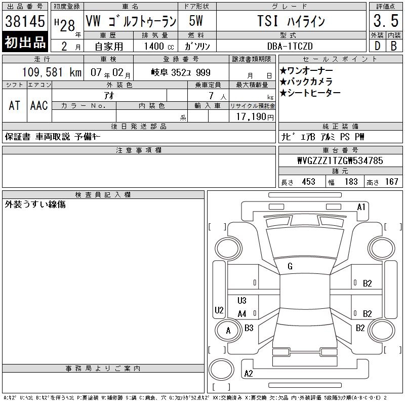 VOLKSWAGEN GOLF TOURAN - лот 38145