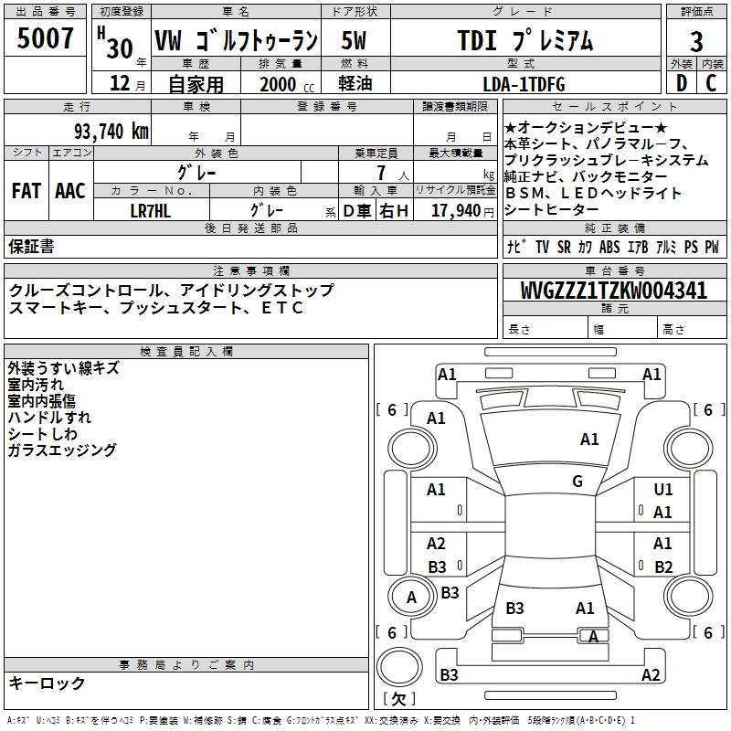 VOLKSWAGEN GOLF TOURAN TDI PREMIUM - лот 5007