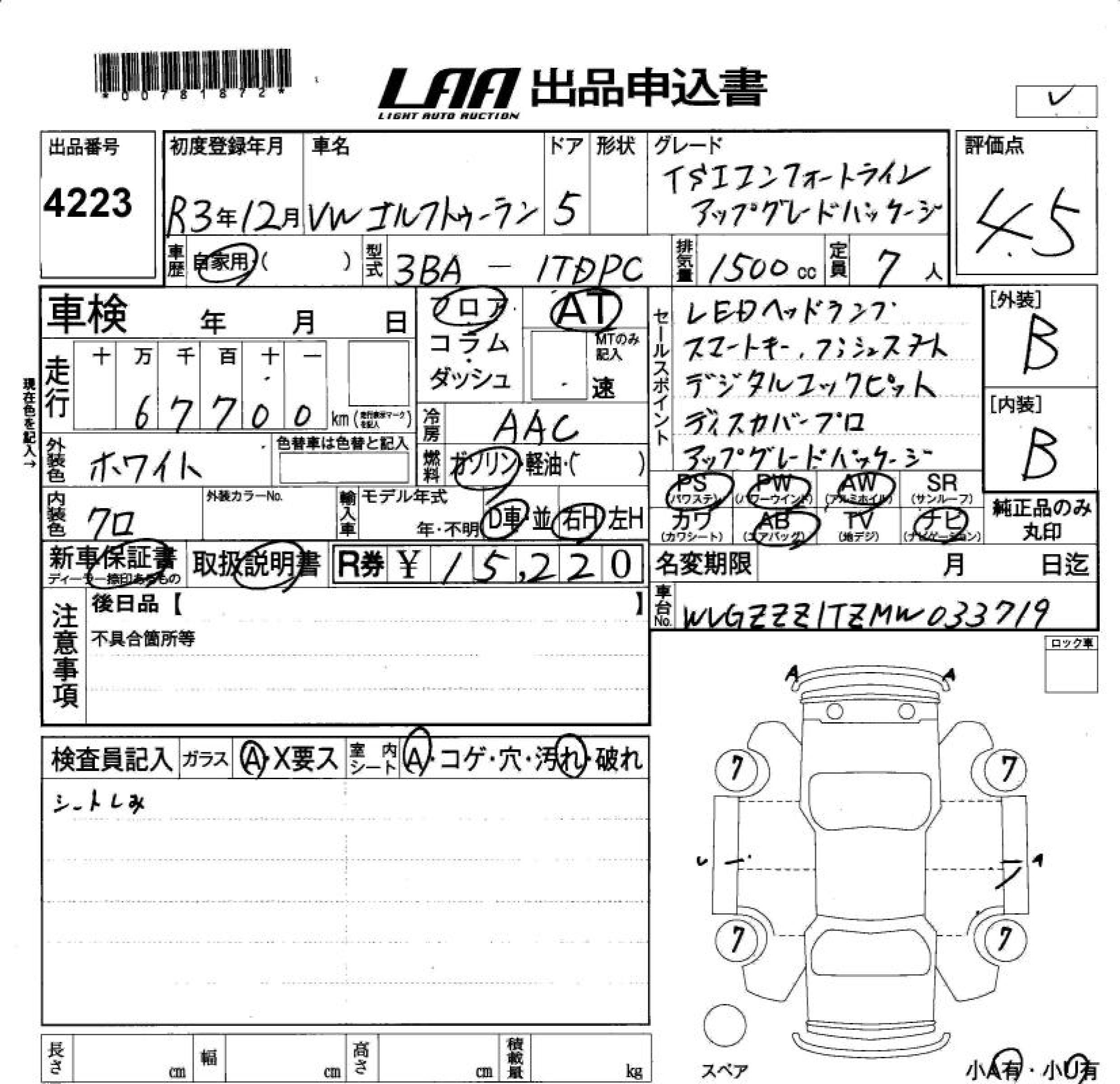 VOLKSWAGEN GOLF TOURAN TSI COMFORT LINE A - лот 4223