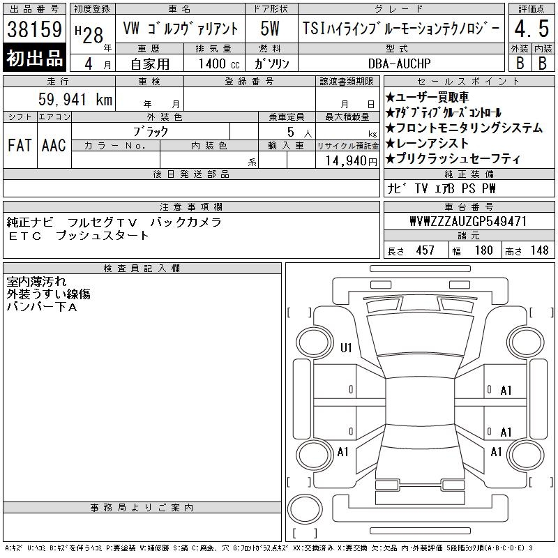VOLKSWAGEN GOLF VARIANT - лот 38159
