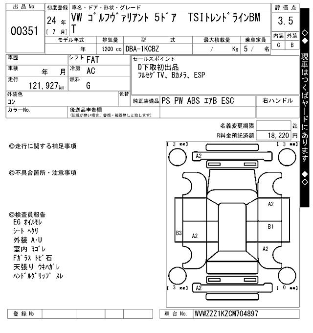 VOLKSWAGEN GOLF VARIANT - лот 351