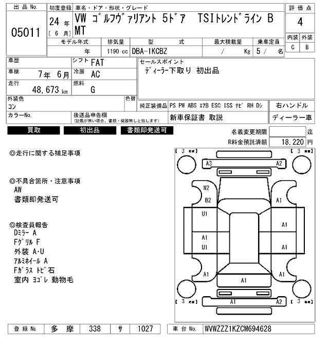 VOLKSWAGEN GOLF VARIANT - лот 5011