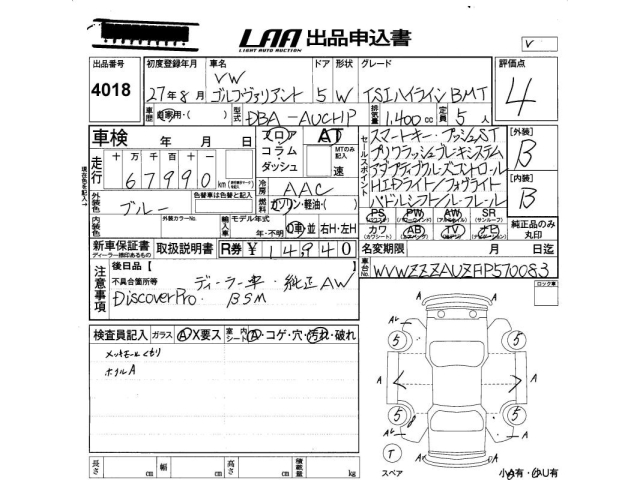 VOLKSWAGEN GOLF VARIANT - лот 4018