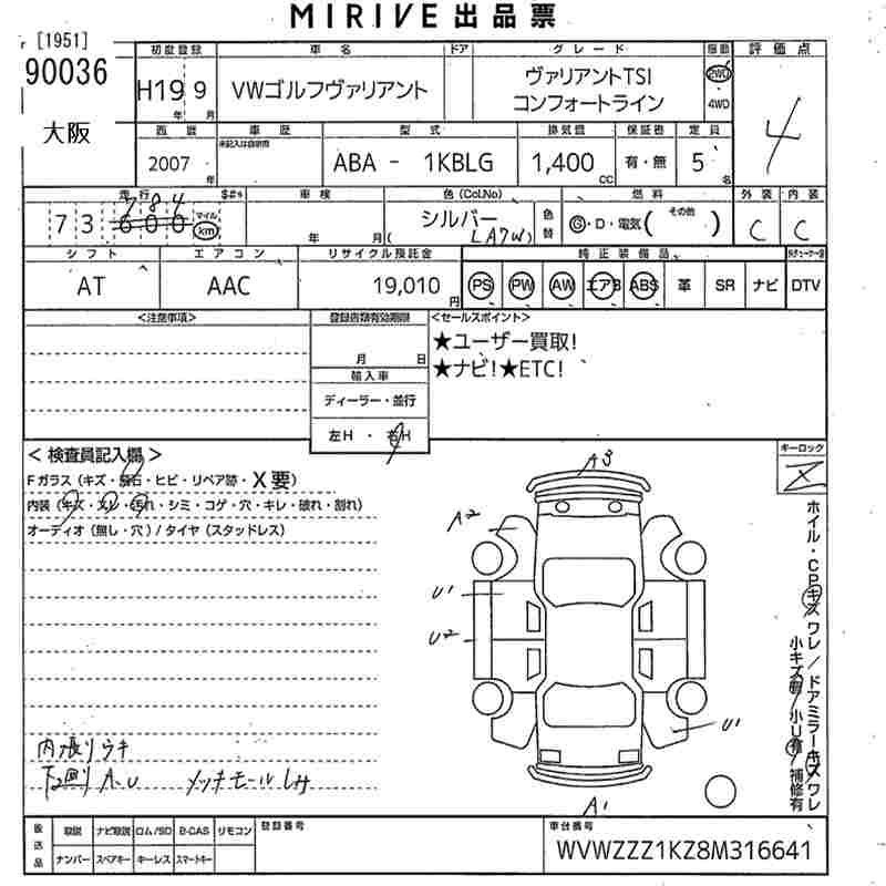 VOLKSWAGEN GOLF VARIANT - лот 90036