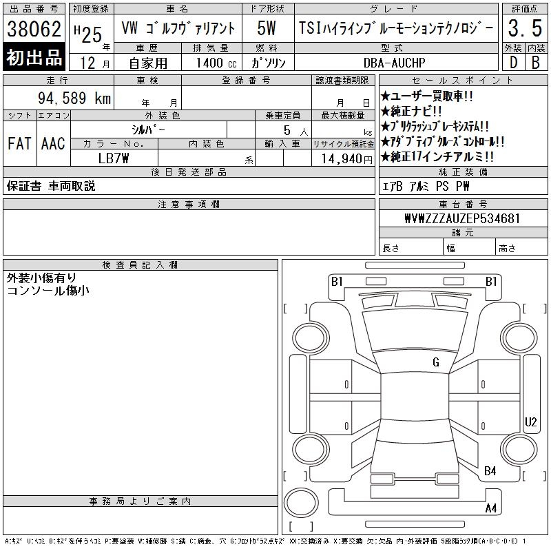 VOLKSWAGEN GOLF VARIANT - лот 38062
