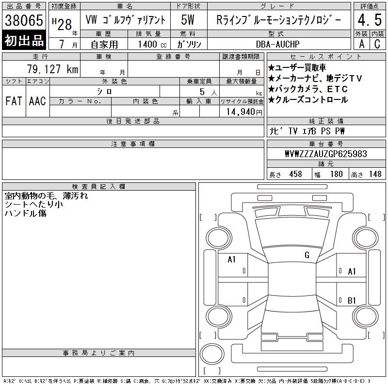 VOLKSWAGEN GOLF VARIANT - лот 38065