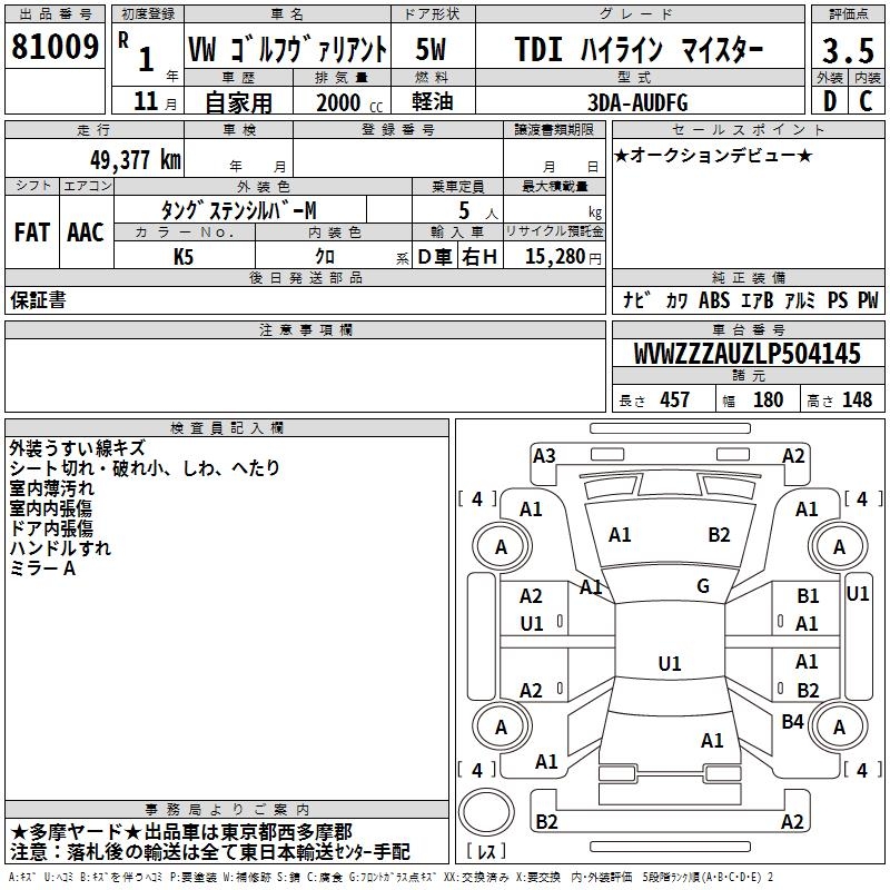 VOLKSWAGEN GOLF VARIANT - лот 81009