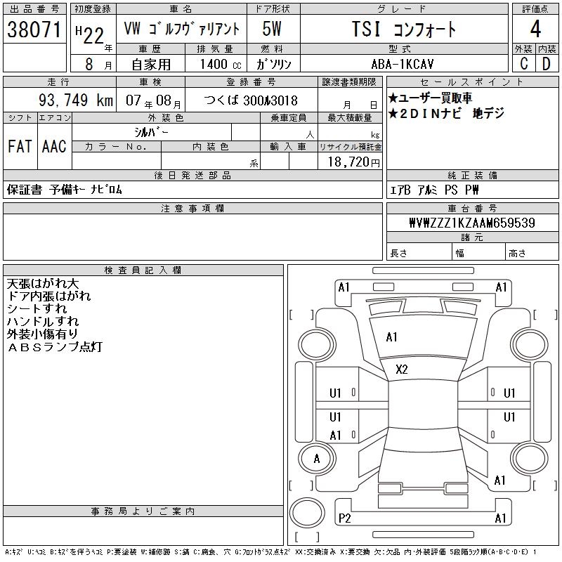 VOLKSWAGEN GOLF VARIANT - лот 38071