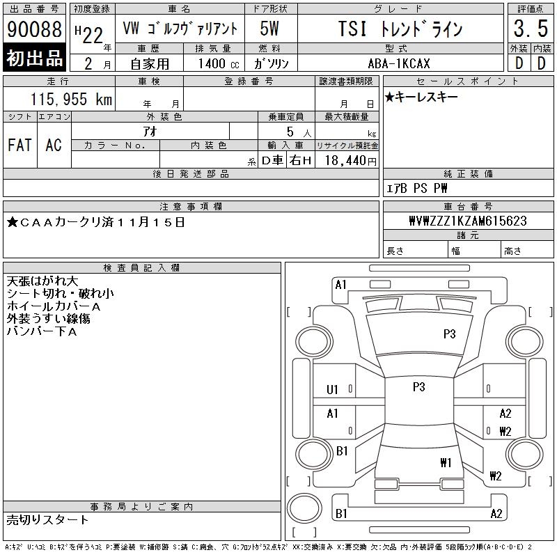 Все аукционы VOLKSWAGEN GOLF VARIANT