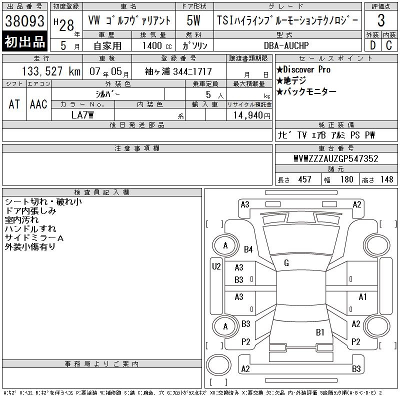 VOLKSWAGEN GOLF VARIANT - лот 38093