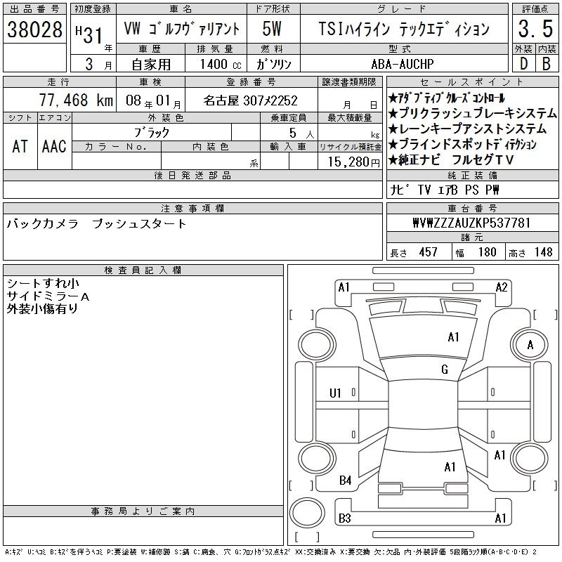VOLKSWAGEN GOLF VARIANT - лот 38028