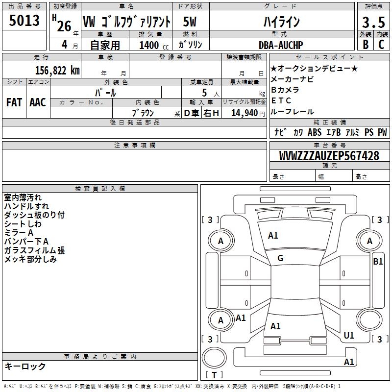 VOLKSWAGEN GOLF VARIANT - лот 5013