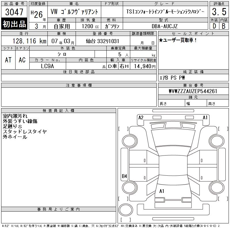 VOLKSWAGEN GOLF VARIANT - лот 3047