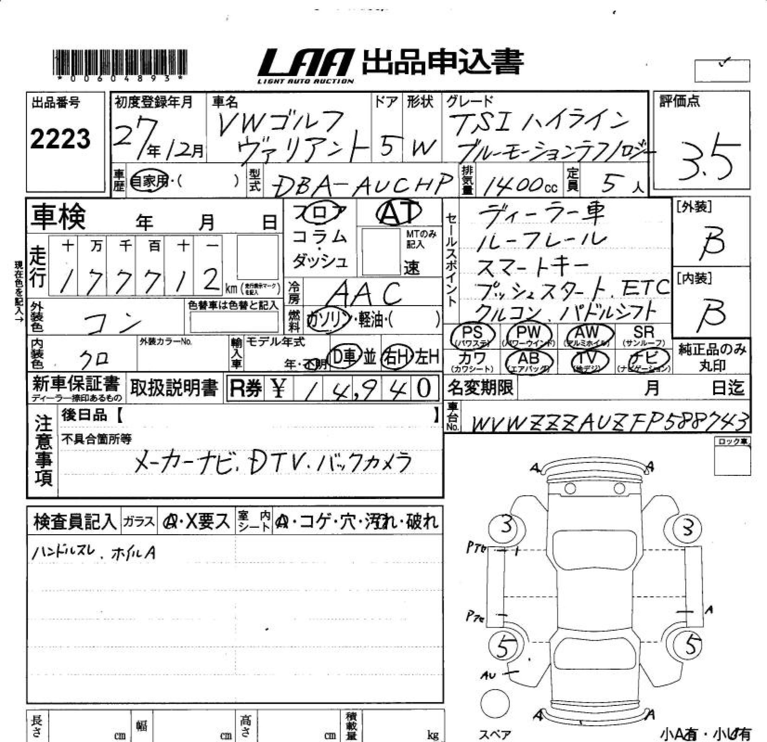 VOLKSWAGEN GOLF VARIANT - лот 2223