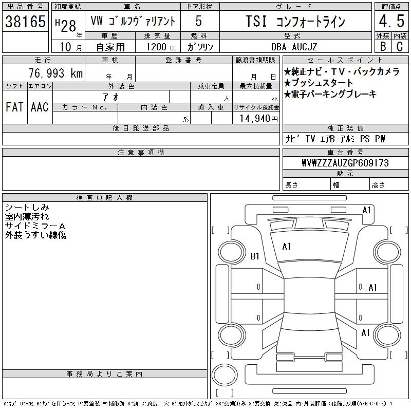 VOLKSWAGEN GOLF VARIANT - лот 38165