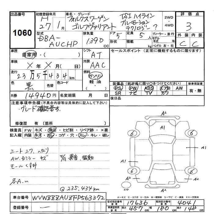 VOLKSWAGEN GOLF VARIANT TSI HIGH LINE BLUE MOSHON TECHNO ROJI-? - лот 1060