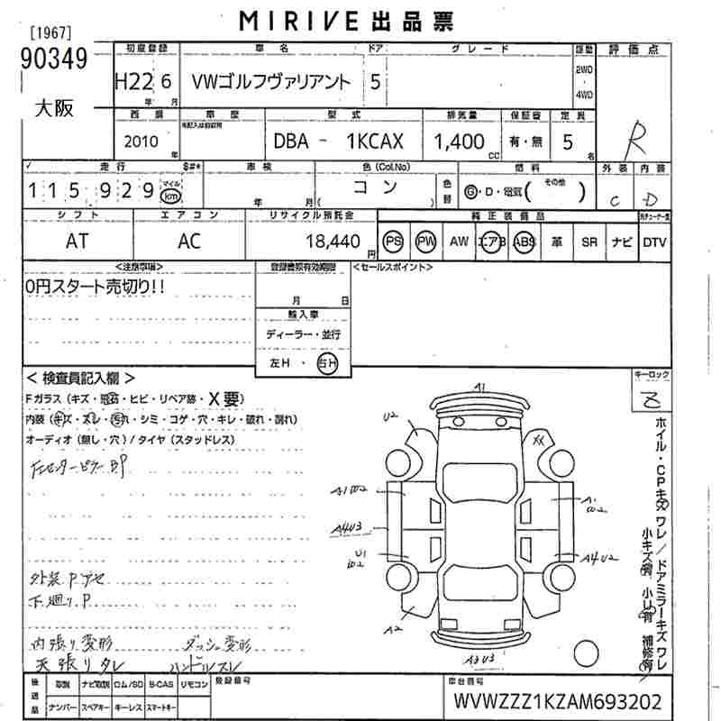 VOLKSWAGEN GOLF VARIANT - лот 90349