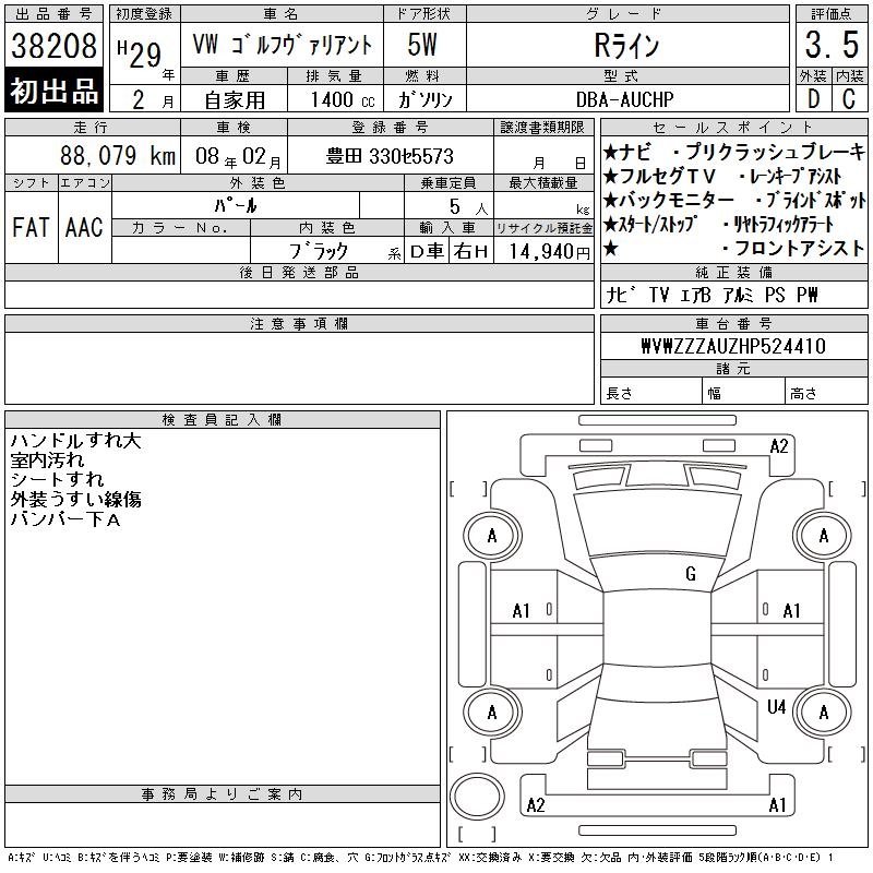 VOLKSWAGEN GOLF VARIANT R LINE - лот 38208