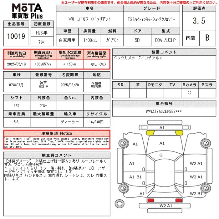 VOLKSWAGEN GOLF VARIANT TSI HIGH LINE B MOTION TECHNO ROJI- - лот 10019
