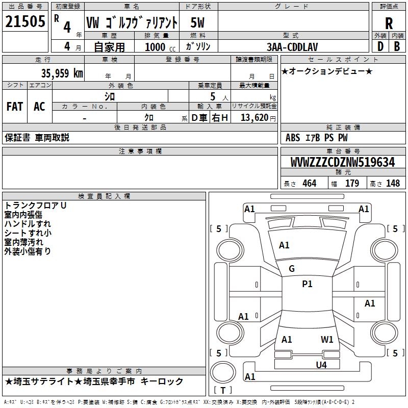 VOLKSWAGEN GOLF VARIANT - лот 21505