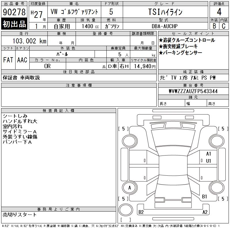 VOLKSWAGEN GOLF VARIANT TSI HIGH LINE - лот 90278