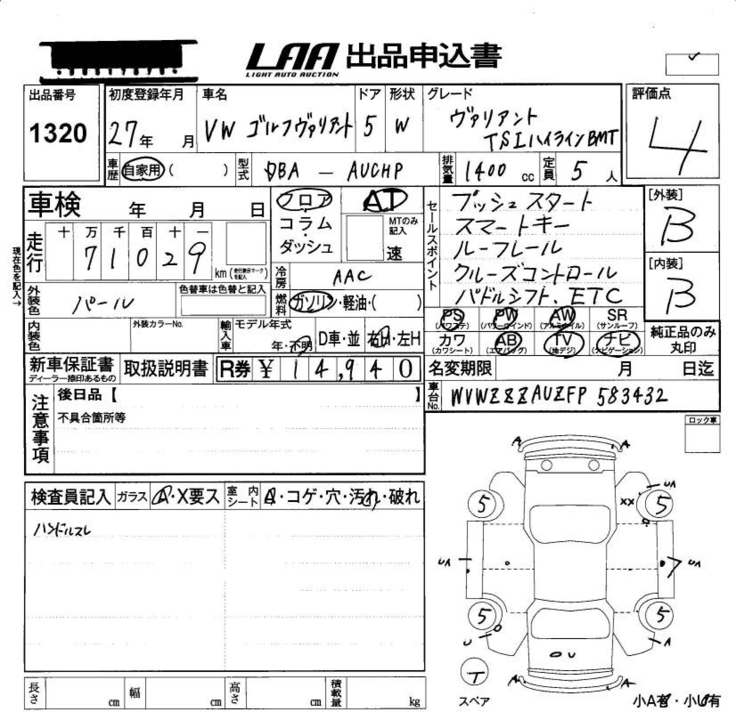 VOLKSWAGEN GOLF VARIANT TSI HIGH LINE BMT - лот 1320