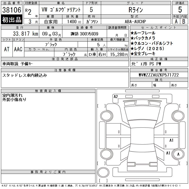 VOLKSWAGEN GOLF VARIANT R LINE - лот 38106
