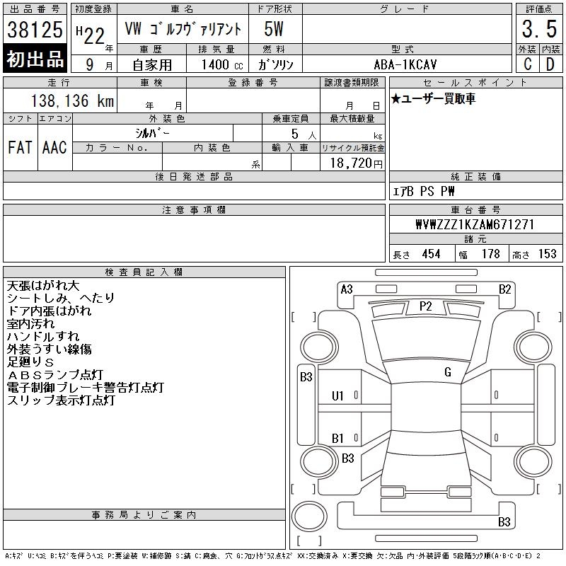 VOLKSWAGEN GOLF VARIANT - лот 38125