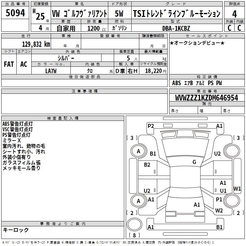 VOLKSWAGEN GOLF VARIANT TSI TREND LINE BLUE MOTION - лот 5094