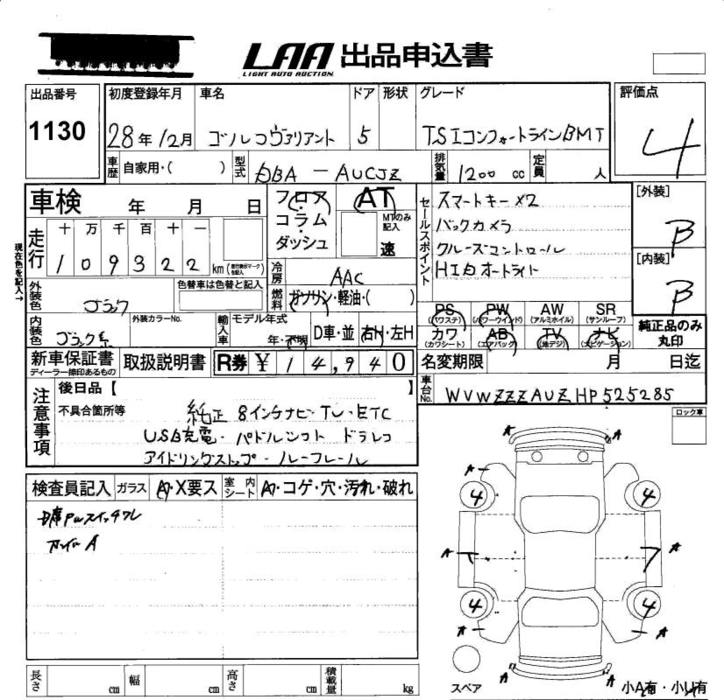 VOLKSWAGEN GOLF VARIANT TSI COMFORT LINE BM - лот 1130