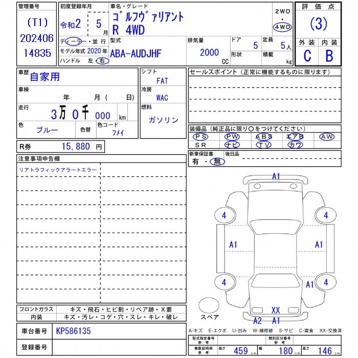 VOLKSWAGEN GOLF VARIANT - лот 35931