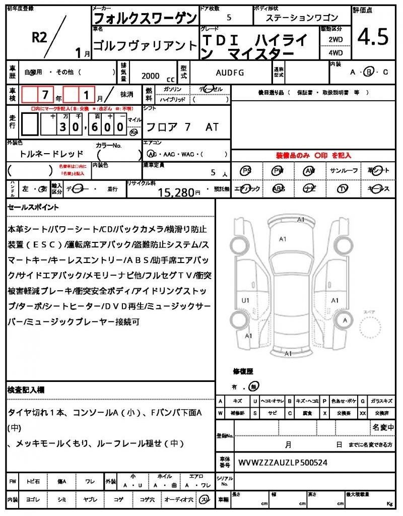 VOLKSWAGEN GOLF VARIANT - лот 54492