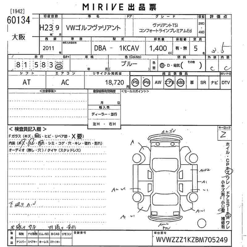 VOLKSWAGEN GOLF VARIANT - лот 60134