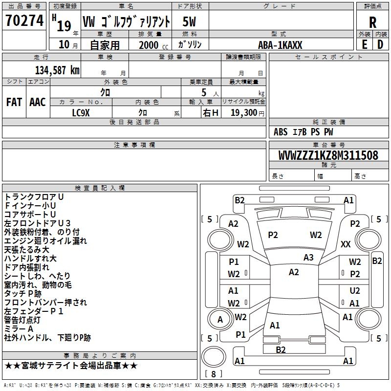 VOLKSWAGEN GOLF VARIANT - лот 70274