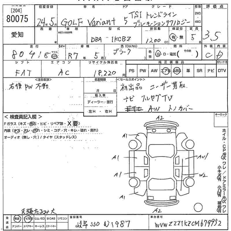 VOLKSWAGEN GOLF VARIANT - лот 80075