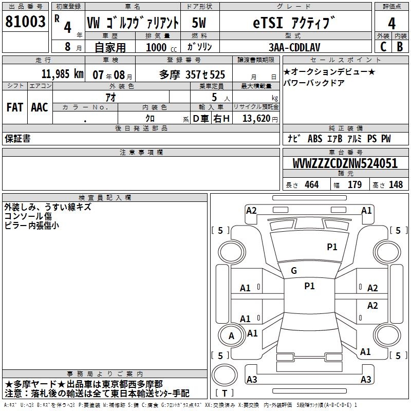 VOLKSWAGEN GOLF VARIANT - лот 81003